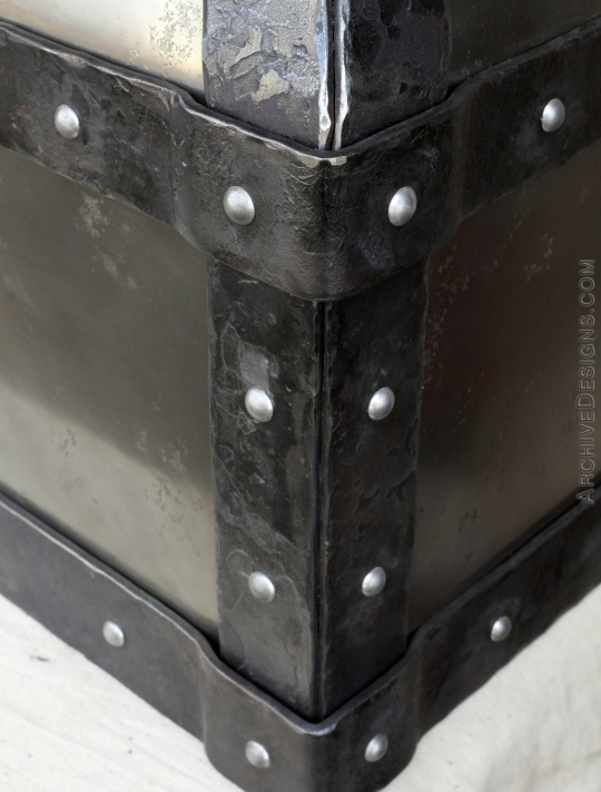 Distressed pewter and forged steel hood for this 1862 home in the historic Delancey neighborhood of Philadelphia on the edge of Rittenhouse Square. Archive Designs collaborated with renown designer Steven Gambrel on this project.